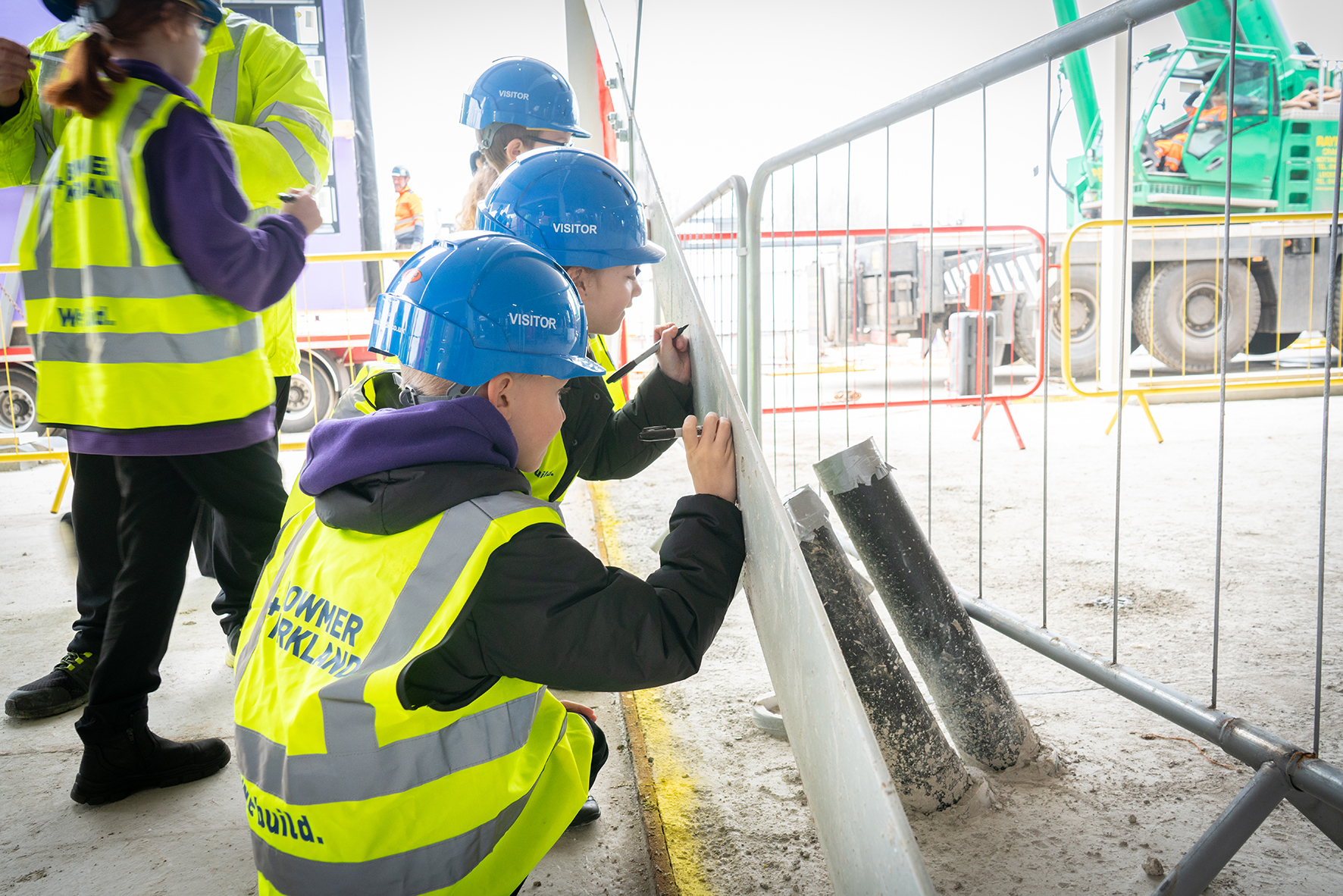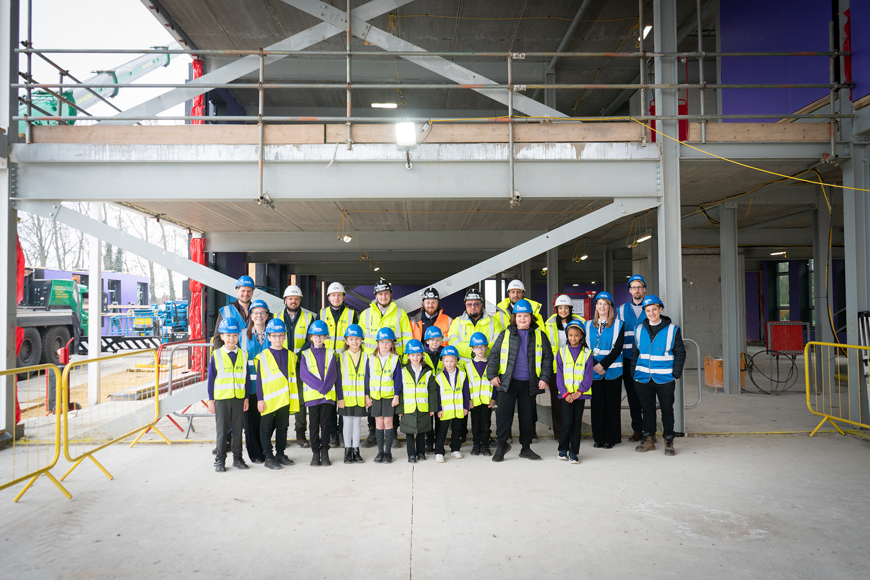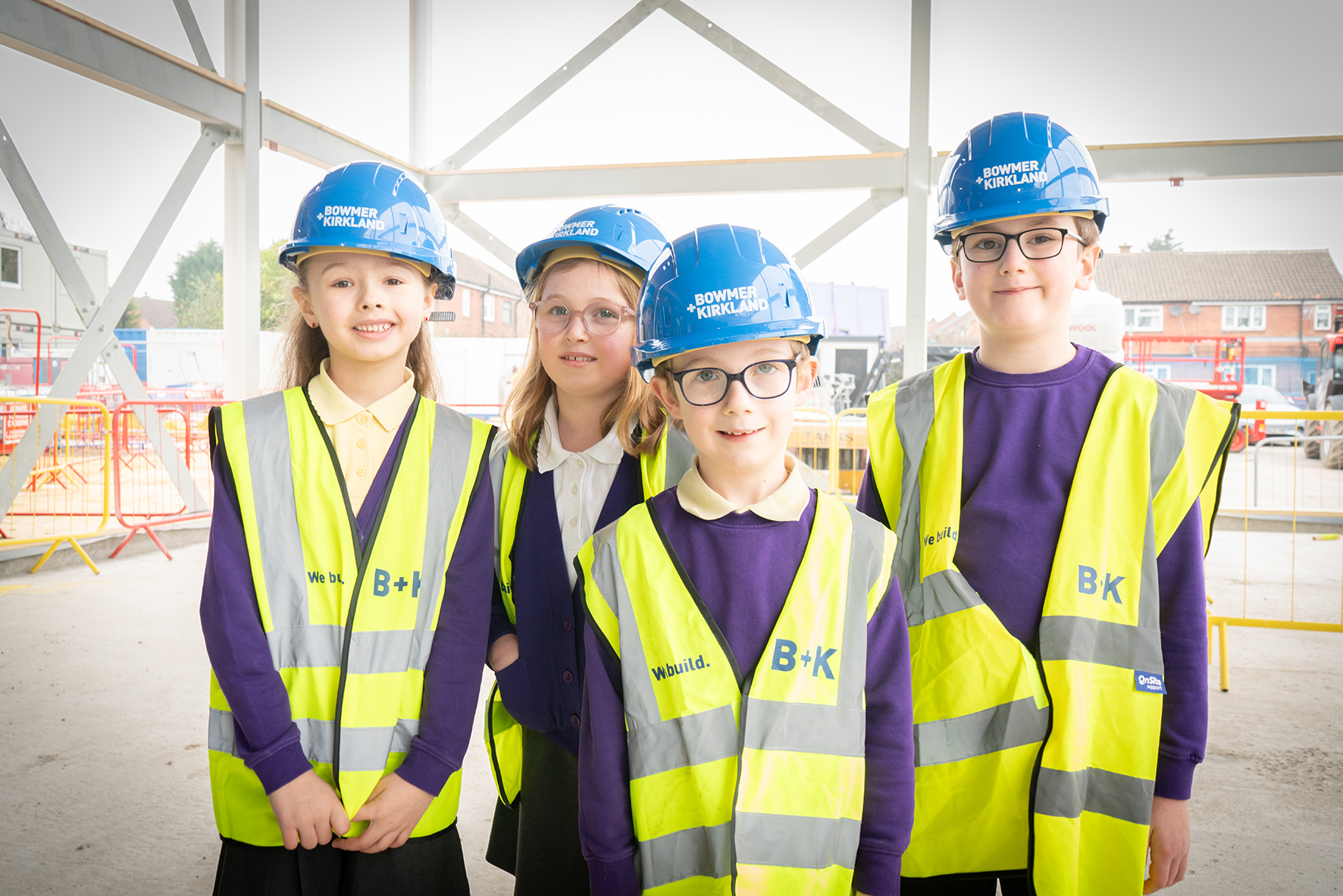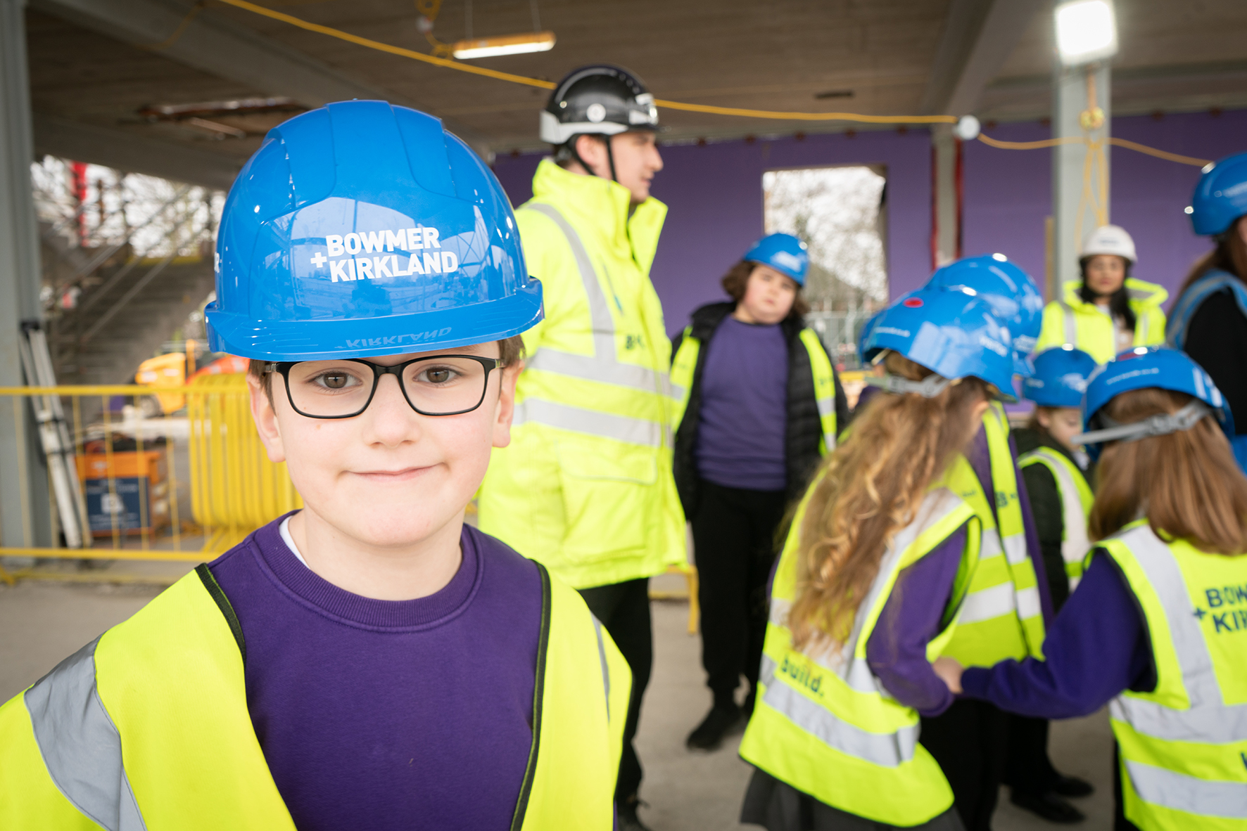 Y1 kick-started our weekly class visits to the rebuild site. Our Bowmer + Kirkland colleagues did an amazing job of answering their questions! Don't they look the part in their high-vis and hard hats?!