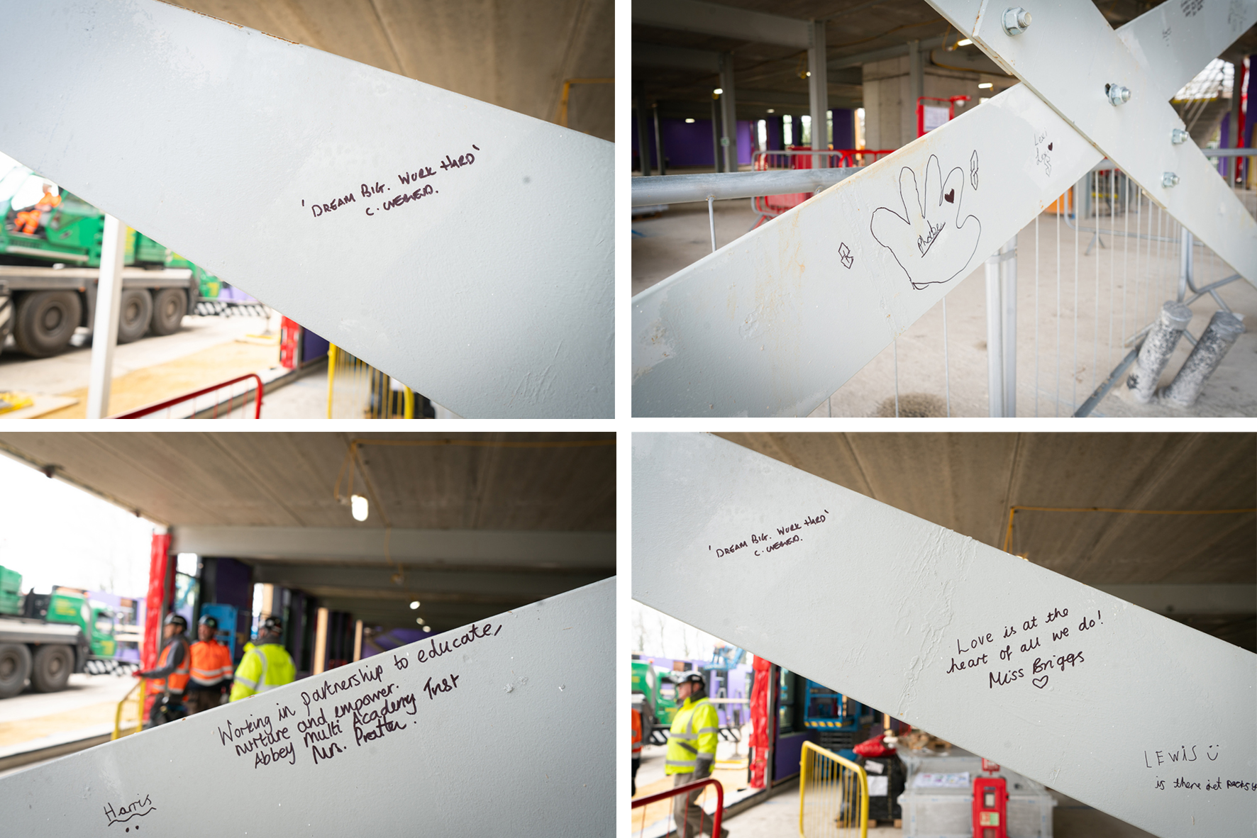 Our pupils, staff and guests from Abbey Multi Academy Trust and Bowmer + Kirkland came together for a special Steel Signing Ceremony. It was a proud moment in the construction of our new school building.